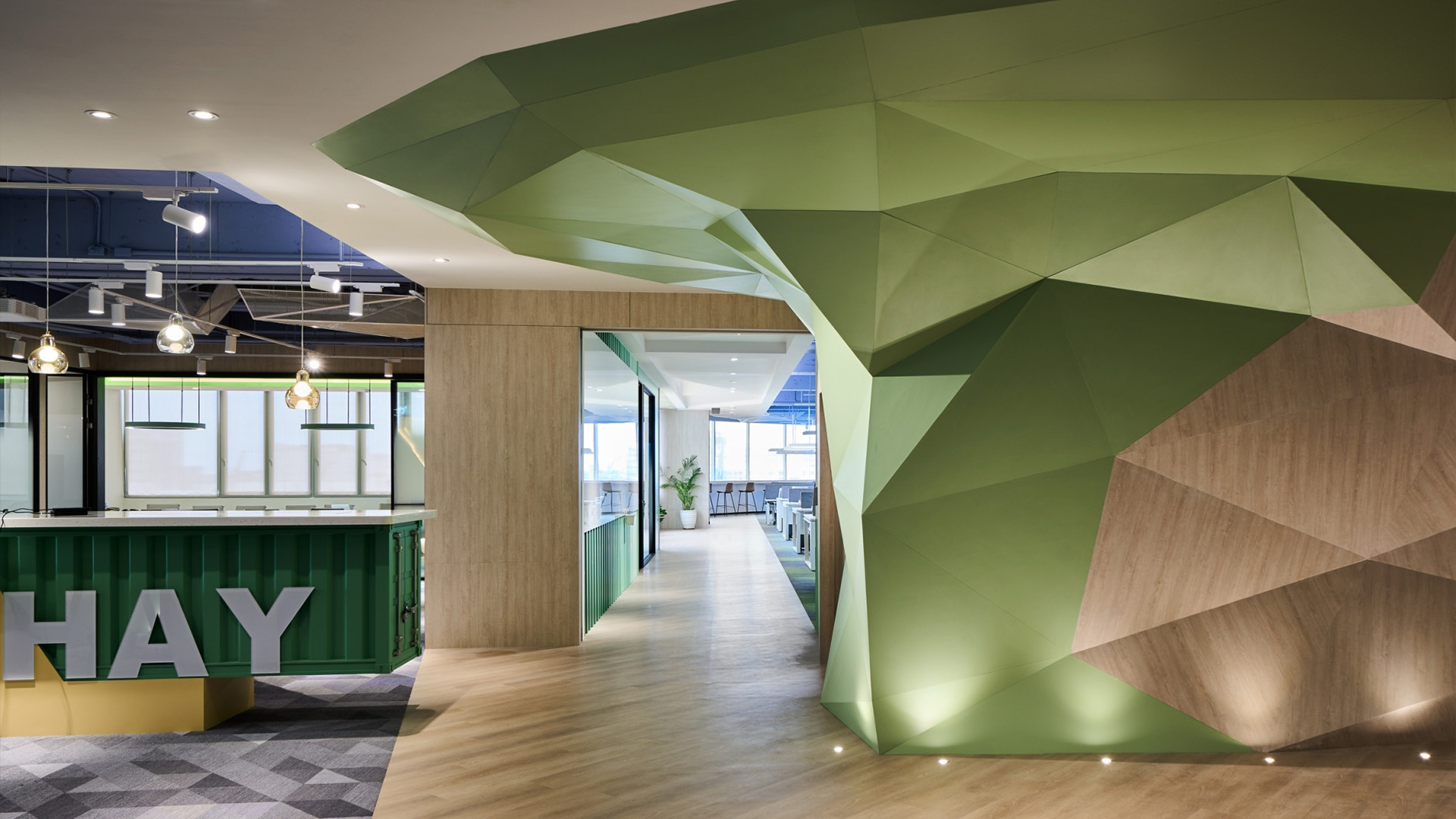 在高度專注的工作環境中,以遼闊的空間情緒創造反差的舒適感,呈現專業語言與城市文化的融合。