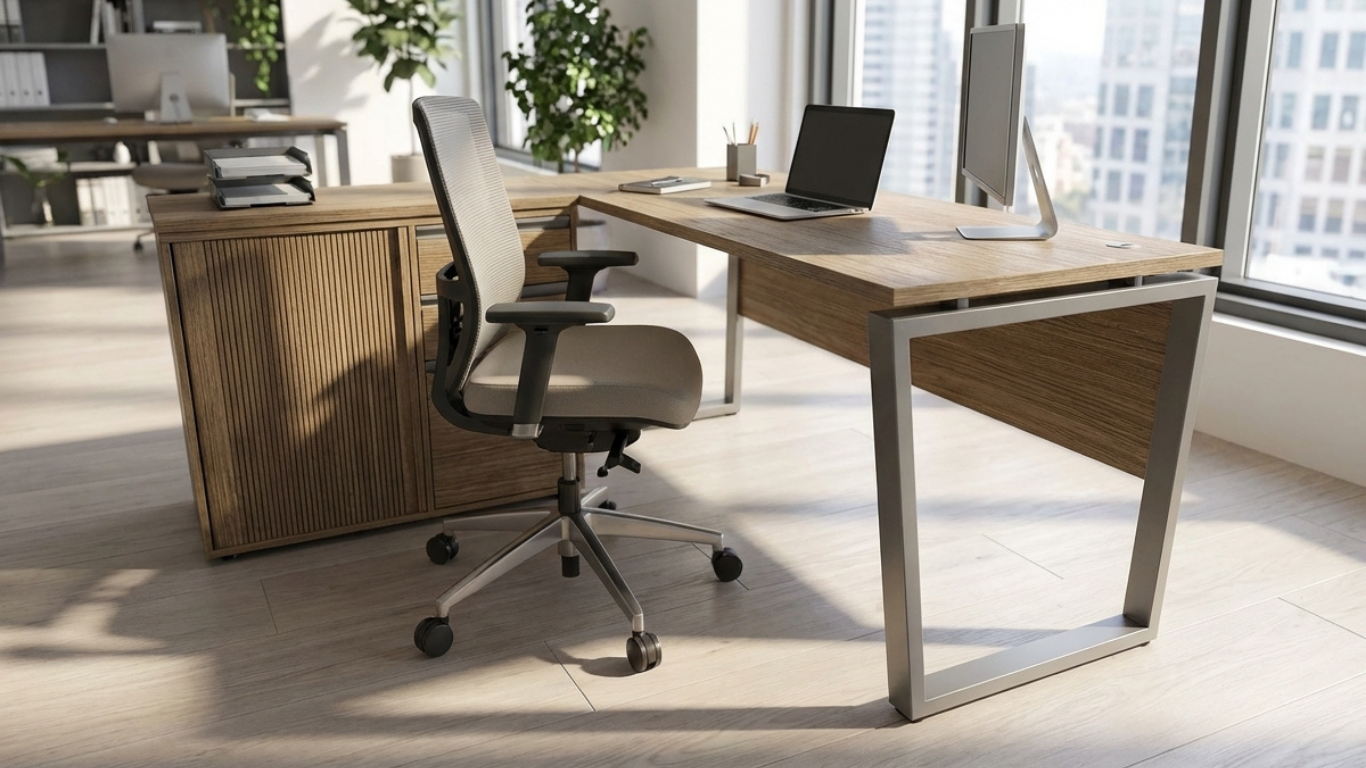結構與穩定性: 桌腳由兩側金屬方管框架構成,從桌面邊緣垂直向下,並由底部的橫樑連接,形成完整的矩形或方框結構。