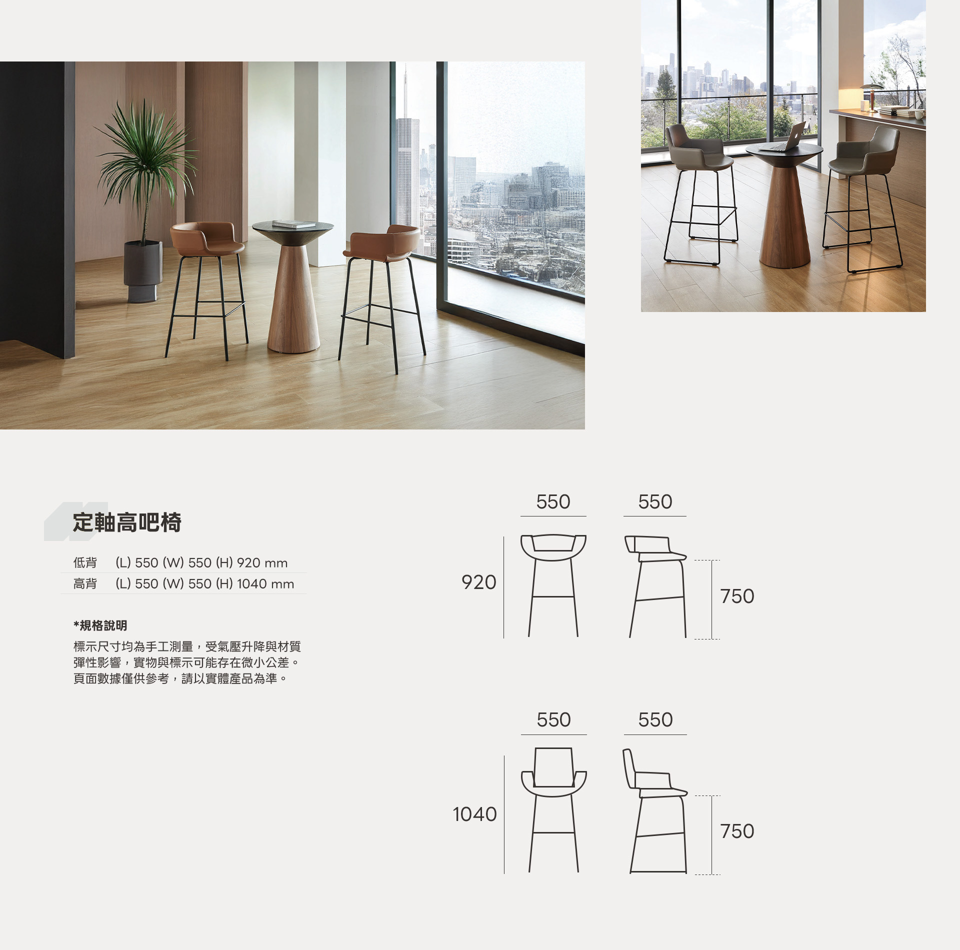 【 彈性配置 】高/低背、兩款椅腳可選,依空間與使用高度自由搭配。
